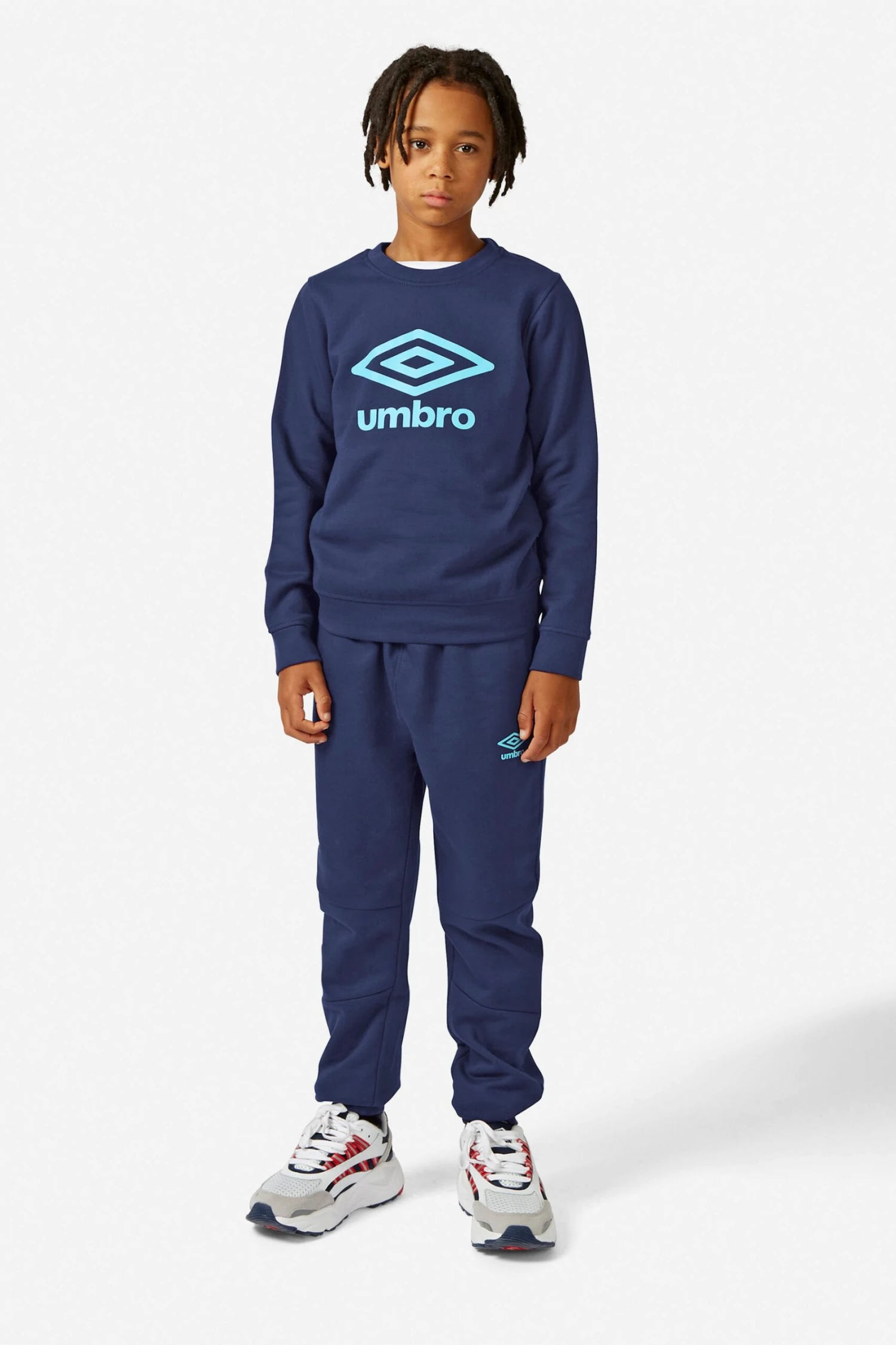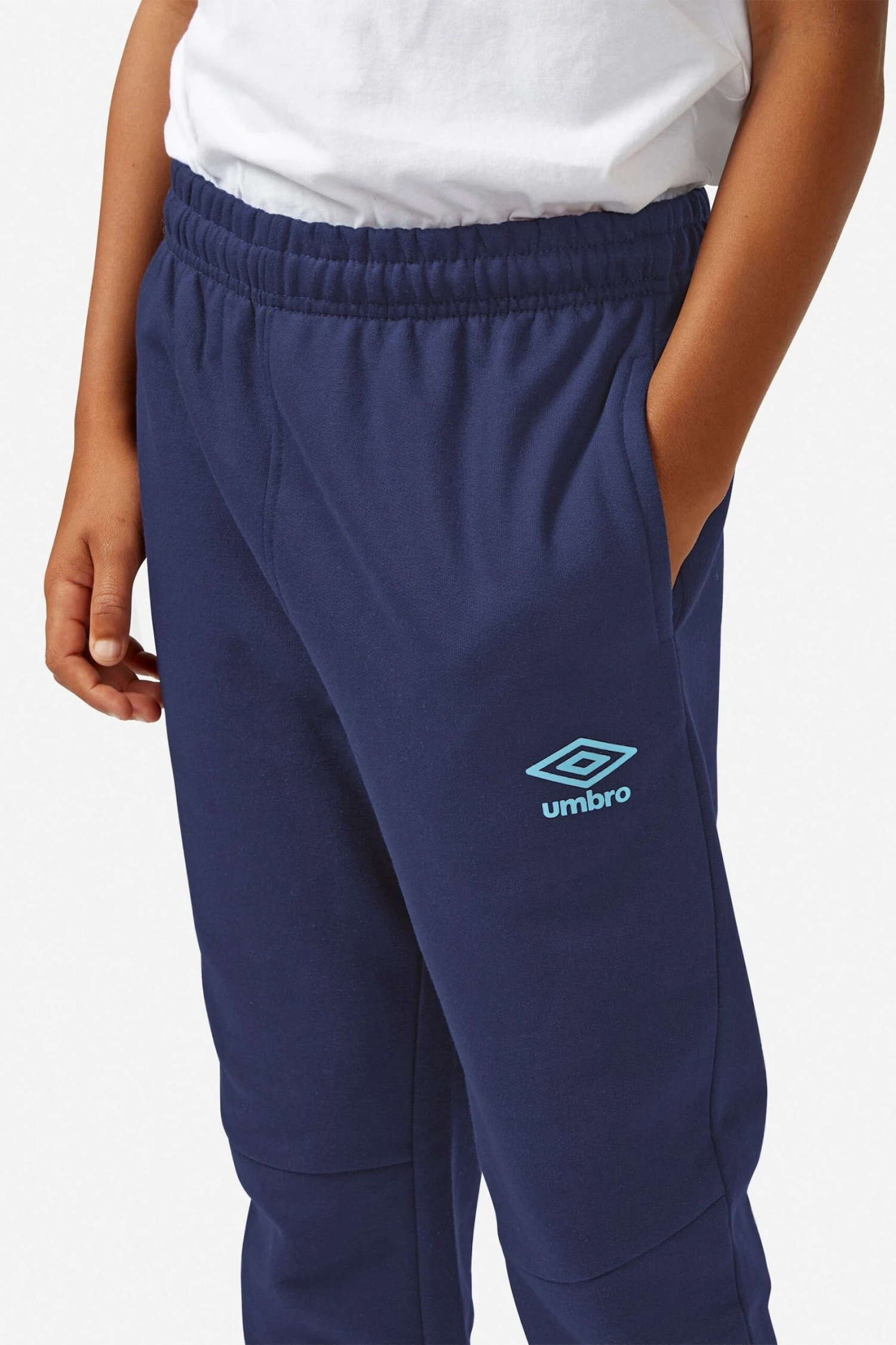 Taking a serious approach to kids’ comfort, the Umbro kids’ joggers are a dream to wear. Made from a super cosy but robust cotton blend, the elasticated waist hides an inner drawcord so you can adjust to the perfect fit. The fit is bang on trend in a slightly tapered leg shape and panelled knees, giving a slightly smarter look to this casual style. Two side pockets are perfect for keeping hands cosy on a chilly day and the high-build printed logo on the leg adds the Umbro diamond finish.