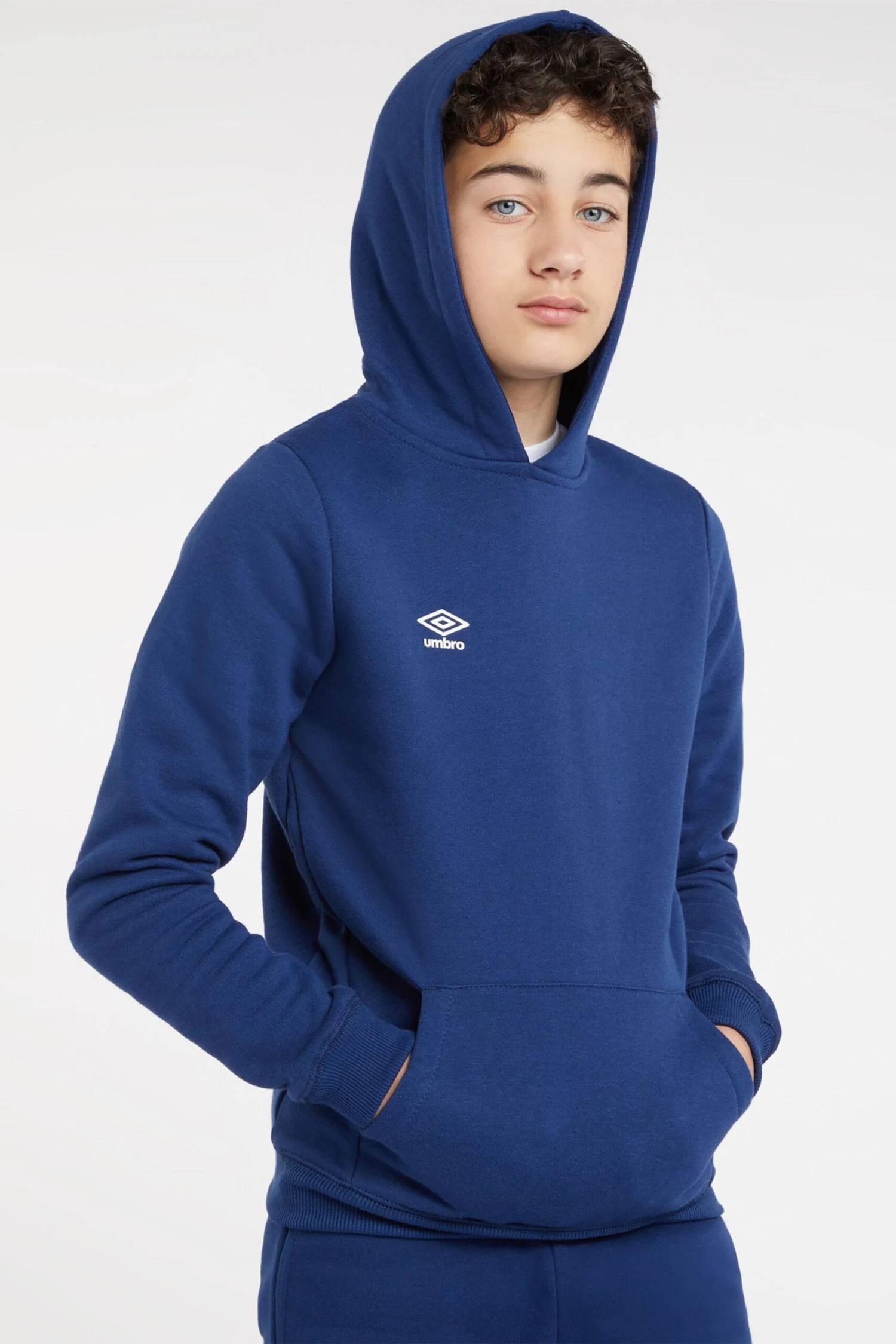 Take your kids’ comfort to a whole new level in the Club Leisure Junior Hoodie. Fashioned from an ultra-soft cotton-rich blend, the ribbed cuffs and hem keep draughts at bay while the hoodie provides additional cosy shelter. Finished with a generous kangaroo pocket and the Umbro diamond logo printed on the chest.