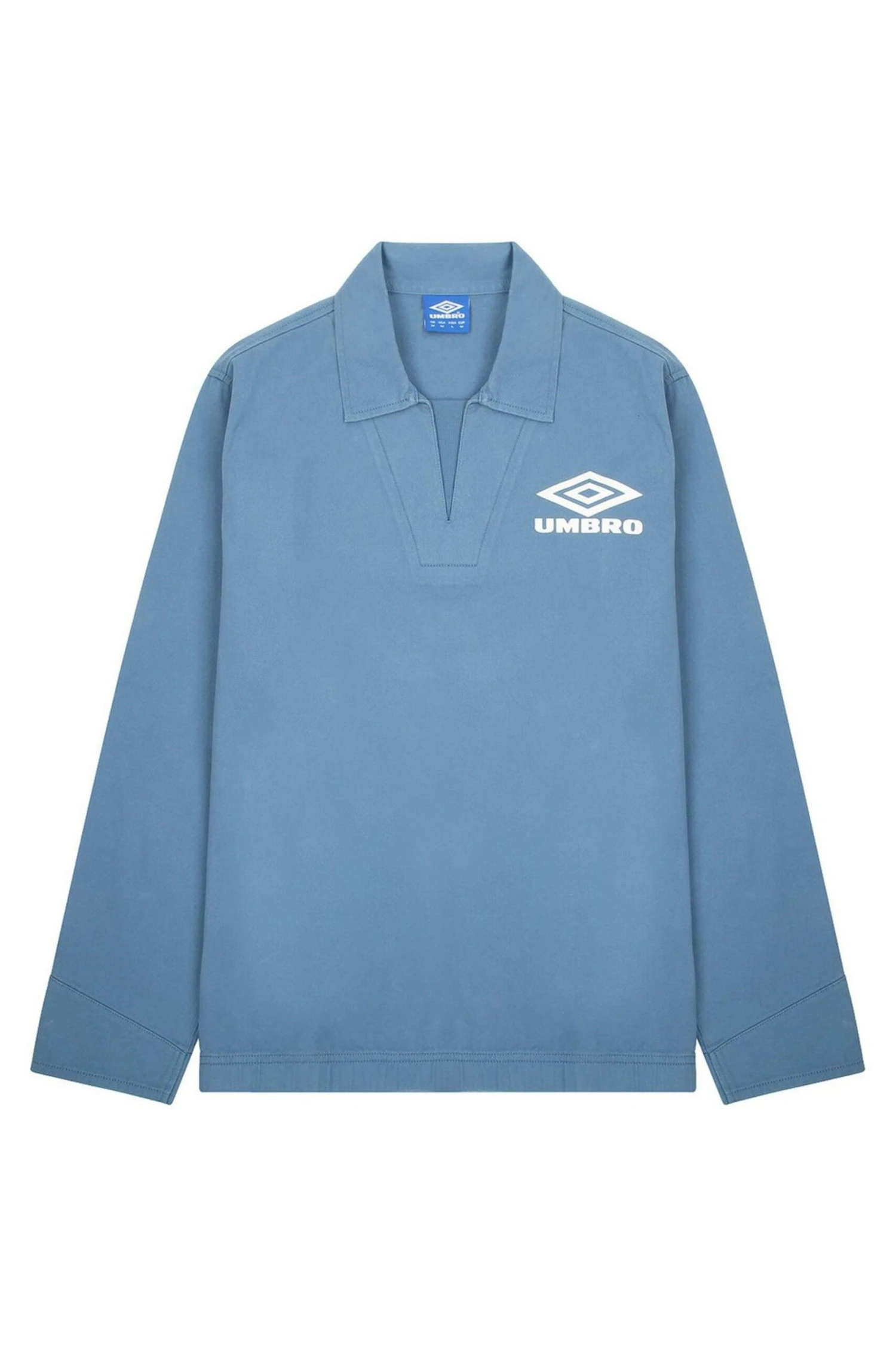 Umbro reaffirms its roots as uniform to 1990 s Manchester Casuals with the release of its Classic Drill collection. Affirmed as must-have clobber 25 years ago when Oasis performed to its home crowd at Manchester City FCs Maine Road football ground, Umbros drill styles have gone on to become much sought-after symbols of sports/fashion crossover. This Drill Top is styled in a relaxed fit, with an inserted ribbed V to the placket, finished with a self fabric collar and cuff panels and an elasticated gathered hem. The Umbro logo is printed in a matte platisol finish to the front chest and back.