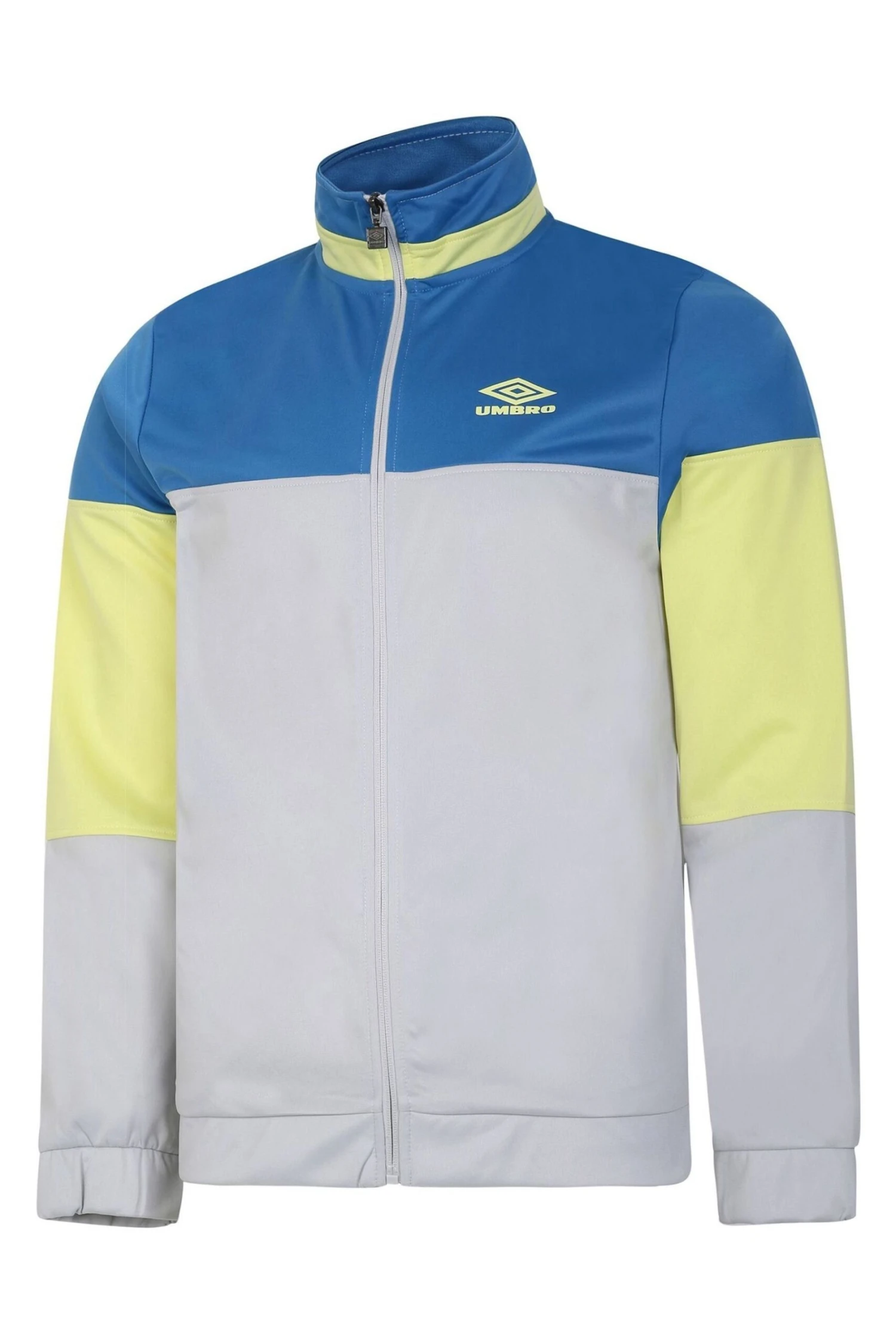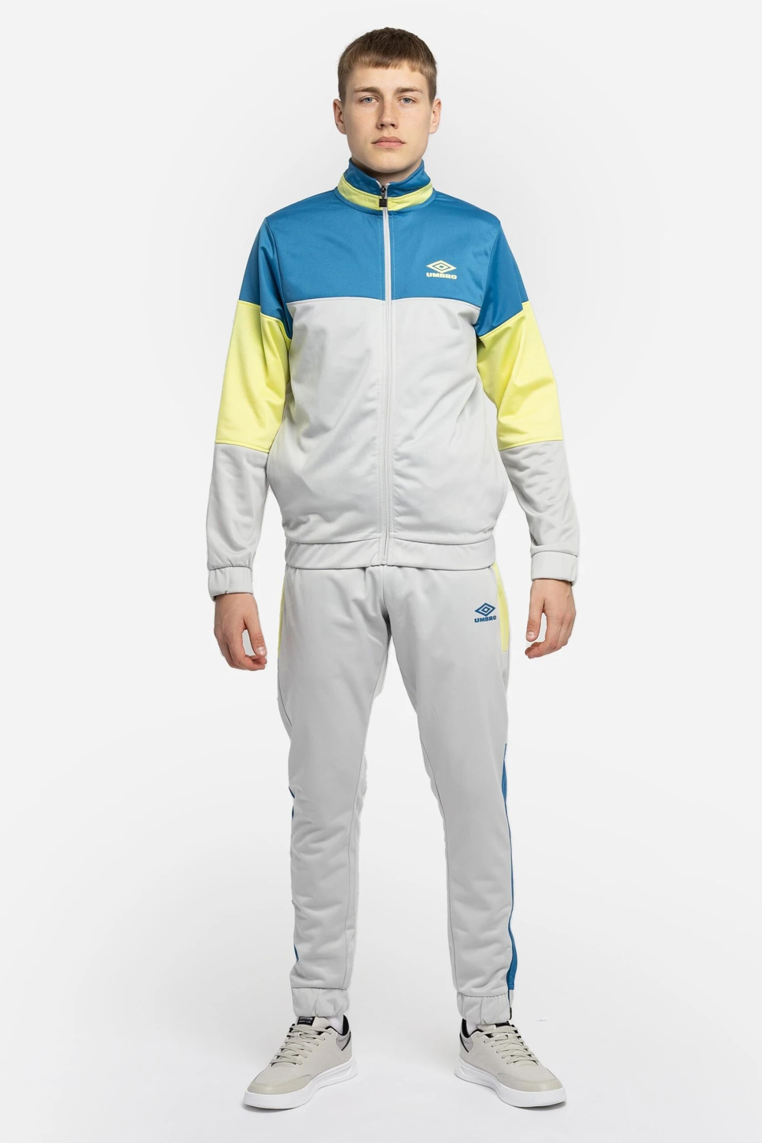 Get ready to kickstart your day in the Diamond Knitted Poly Tracksuit, with bold colourblock panels adding the highlights to this athlete-inspired look. This track jacket and joggers combo is made from a smooth tricot knit fabric and lined with mesh and taffeta lining to keep you comfortable whether you’re out for a run or hanging on the sofa. The funnel neck jacket features a full-zip with slip pockets at the side seams and looks great with the bottoms or worn stand-alone with your favourite jeans. The on-trend, slim-fit profile of the jog trouser legs taper to elasticated cuffs, with zippers at the side legs making them easy to get on and off quickly. Finished with the Umbro Diamond logo printed on the chest of the jacket and the top of the trousers.