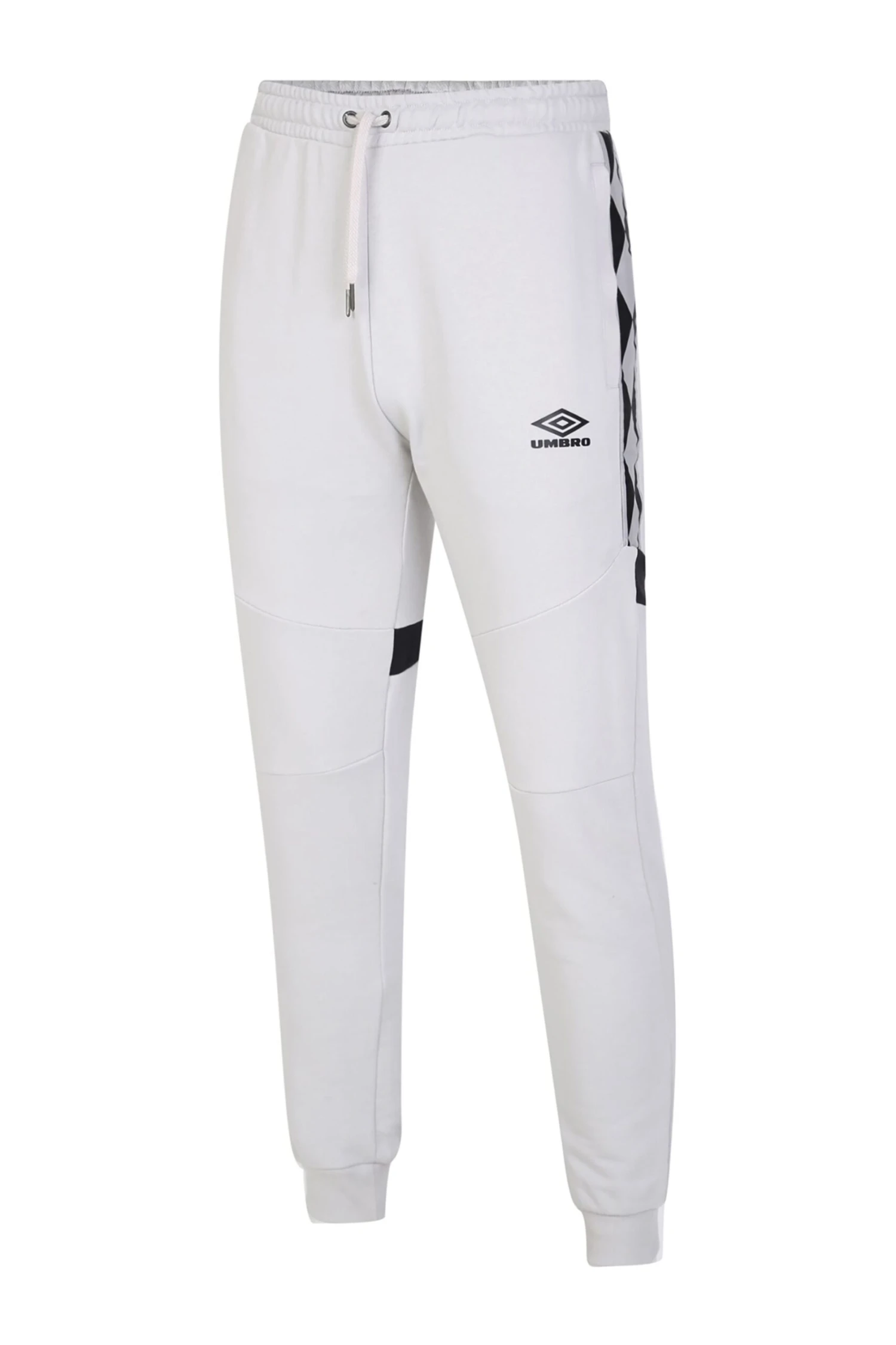 Add a little bounce to your step in the Diamond Taped Fleece Pant. The sport inspired vibes shine through in these super comfortable joggers with diamond tape detail running down the side legs and contrast panels adding a pop of colour to the back legs. Made in an easy regular fit with a hidden drawstring in the waistband and flexible cuffs featuring spring loaded adjusters, the zip side pockets offer handy storage for small valuables when your on the move. Finished with the Matte plastisol Umbro logo to the front leg.
