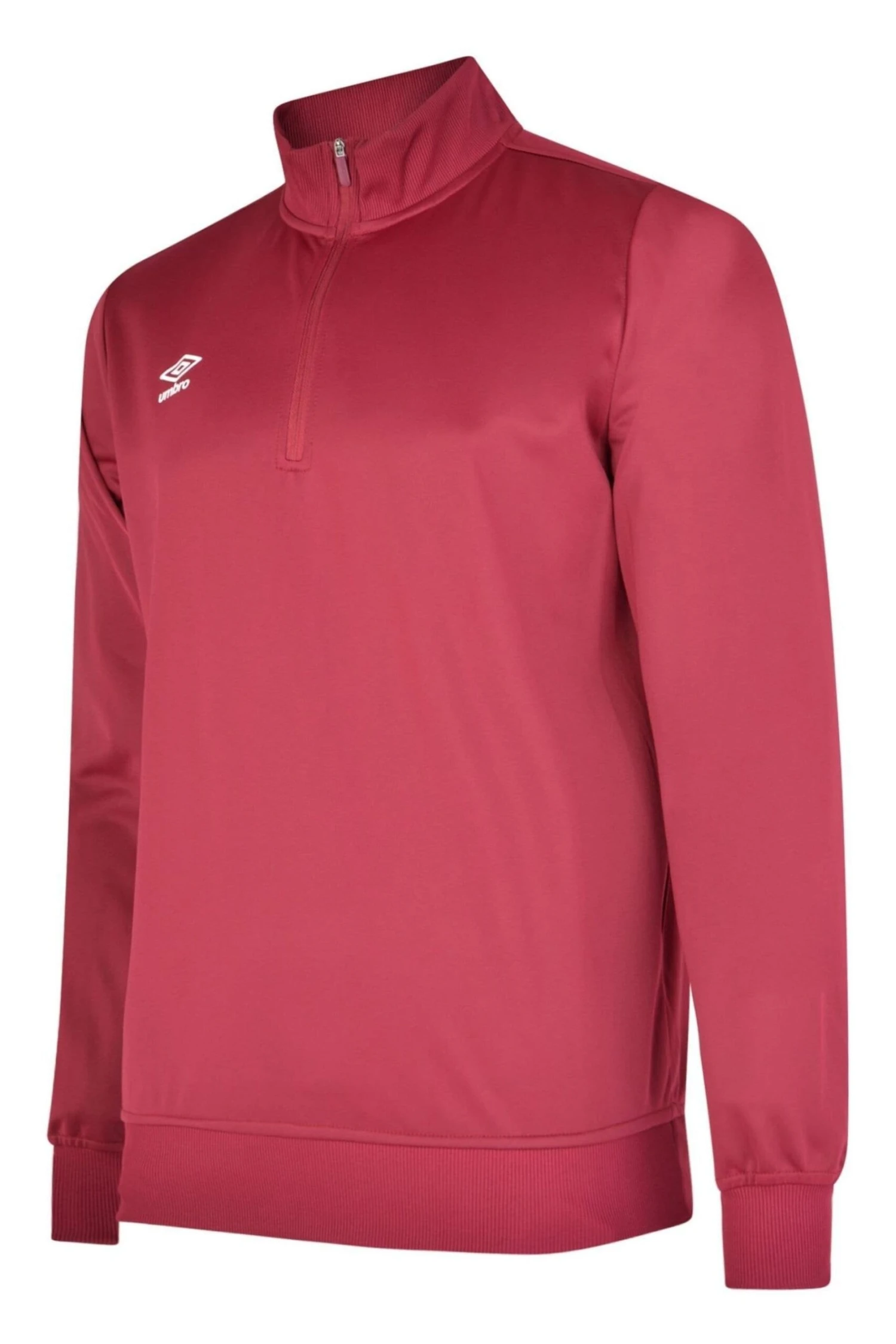 This junior sports half-zip pullover is ideal for training outdoors as it is lightweight but has long sleeves to keep you at the perfect temperature. The half zip makes it easy to get the pullover on and off, and also means the wearer can choose what style they want. The classic stacked diamond Umbro logo is printed onto the upper chest. Funnel Half Zip Neckline. Reverse Coil Branded Zip Pull. Transfer Print Stacked Logo.