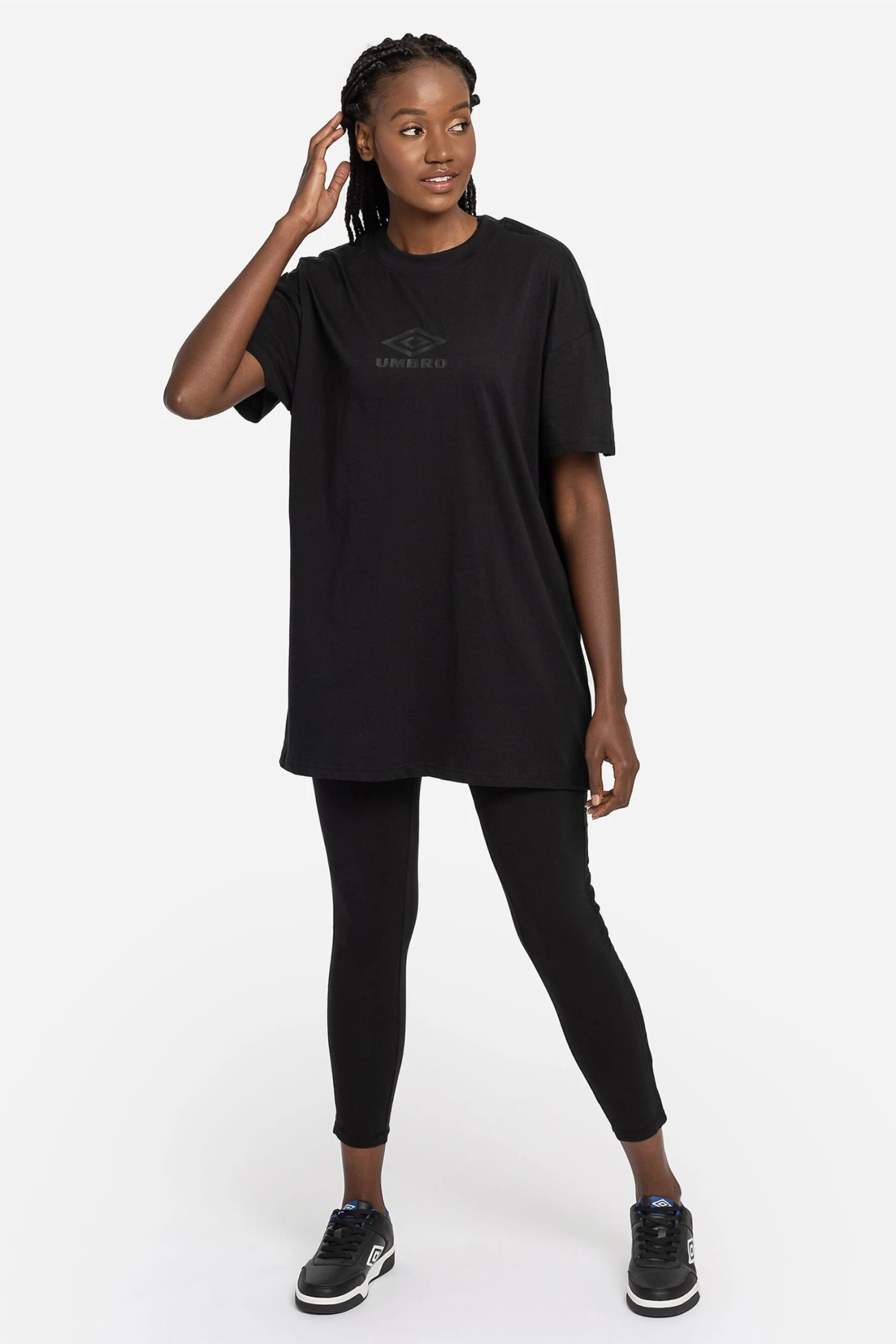 Is it a dress or a T-shirt? Whichever way you decide to wear it will work as its oversized fit ticks all the boxes in the hot retro athleisure trend. This versatile round neck top features the brand’s iconic tape detail down the shoulders for an instant style upgrade, while the iconic Umbro Diamond print to the front chest completes the sporty-style look. Made from pure cotton with the rib trim crew neck enhanced with elastane for shape. Choose this oversized T-shirt dress for maximum comfort and styling options.