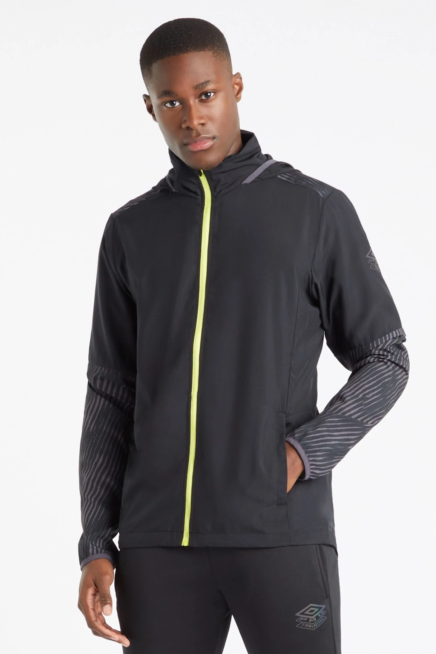 A fitness essential, the Pro Training Graphic Shower Jacket will help you keep up your Strava stats whatever the weather. Ideal for outdoor activities, this sporty training jacket is made from a lightweight stretch woven that is breathable, super quick to dry and treated with a durable water repellent finish, while the internal seams are fully bound for a quality finish. Attention to detail is on point with contrast elastic binding to the cuffs and hood, concealed zip pockets to the front, an adjustable bungee hem and a contrast full-zip to the front featuring a lockable zip pull. Finished with the Pro Training logo in an iridescent print to the sleeve. Made in part using sustainable materials.