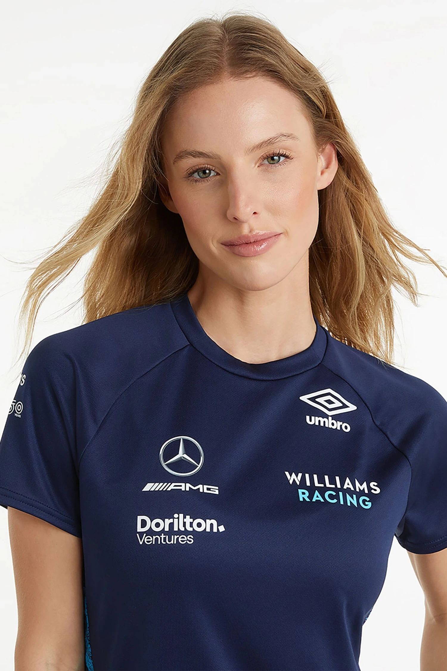 Delivering on precision standards, the women’s Williams training jersey is the perfect top to get you in to the racing spirit. Made from a high-performance micro-eyelet fabric, the raglan sleeves add to the comfort factor while the dropped shaped hem gives a flattering finish. This stylish crew neck is packed full of detail, with contrast jacquard graphic underarm panels, and a contrast panel at the left hem, and the Umbro, Williams racing and sponsor marks adding the final sporty finish.